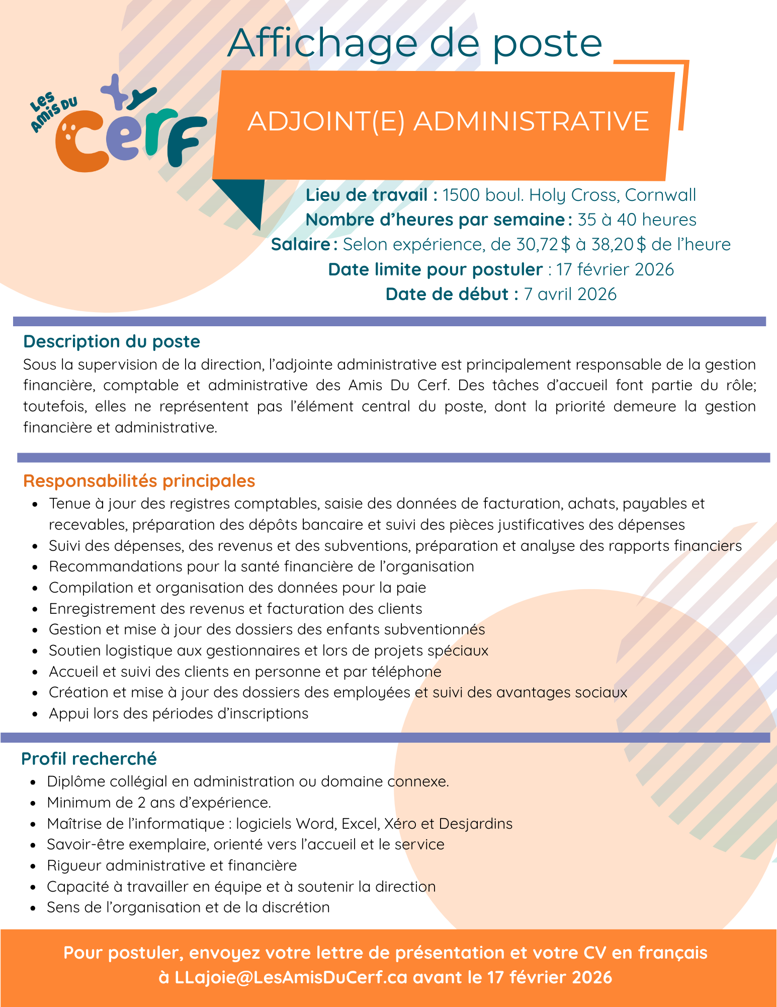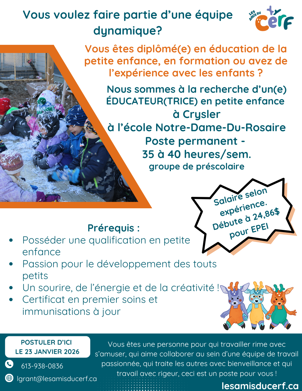 Les Amis Du Cerf vous invitent à faire partie de notre équipe, où collaboration et rigueur sont au cœur de notre quotidien. Ici, la bienveillance est une valeur primordiale et chacun est encouragé à contribuer à un environnement chaleureux et d’entraide. Vous bénéficierez de formations continues, d’un accompagnement personnalisé et d’une ambiance positive et respectueuse.